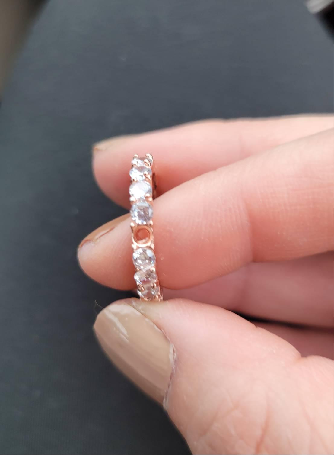 Featuring 3 mm clear cubic zirconia stones that are prong set on a beautiful band of rose gold plating over 925 sterling silver. The eternity band is perfect for stacking and layering with other dainty items. A classic eternity ring is the perfect fashion accessory for any occasion and a must have to add to your jewelry collection! Wear on its own or stack with our other eternity bands. This listing is for one item.