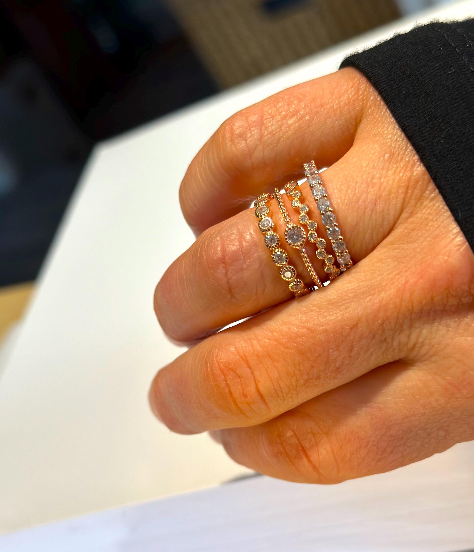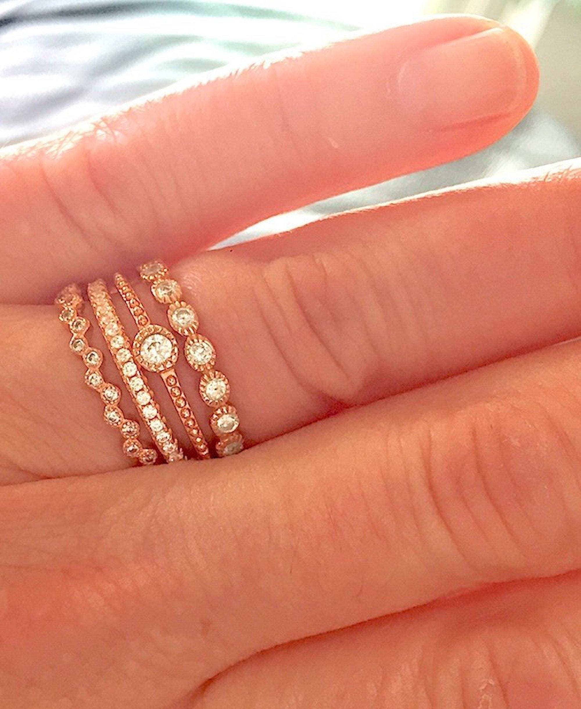 Mix and match with our collection of stacking band ring sets. These versatile pieces can be worn alone or layered together, making them the perfect choice for the fashion-forward individual. Choose from a variety of metal finishes, including rose gold and yellow gold, to find the perfect match for your personal style.
