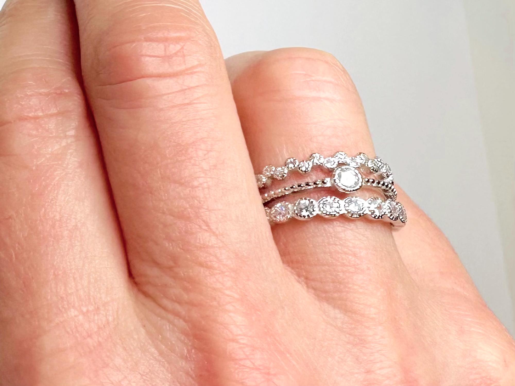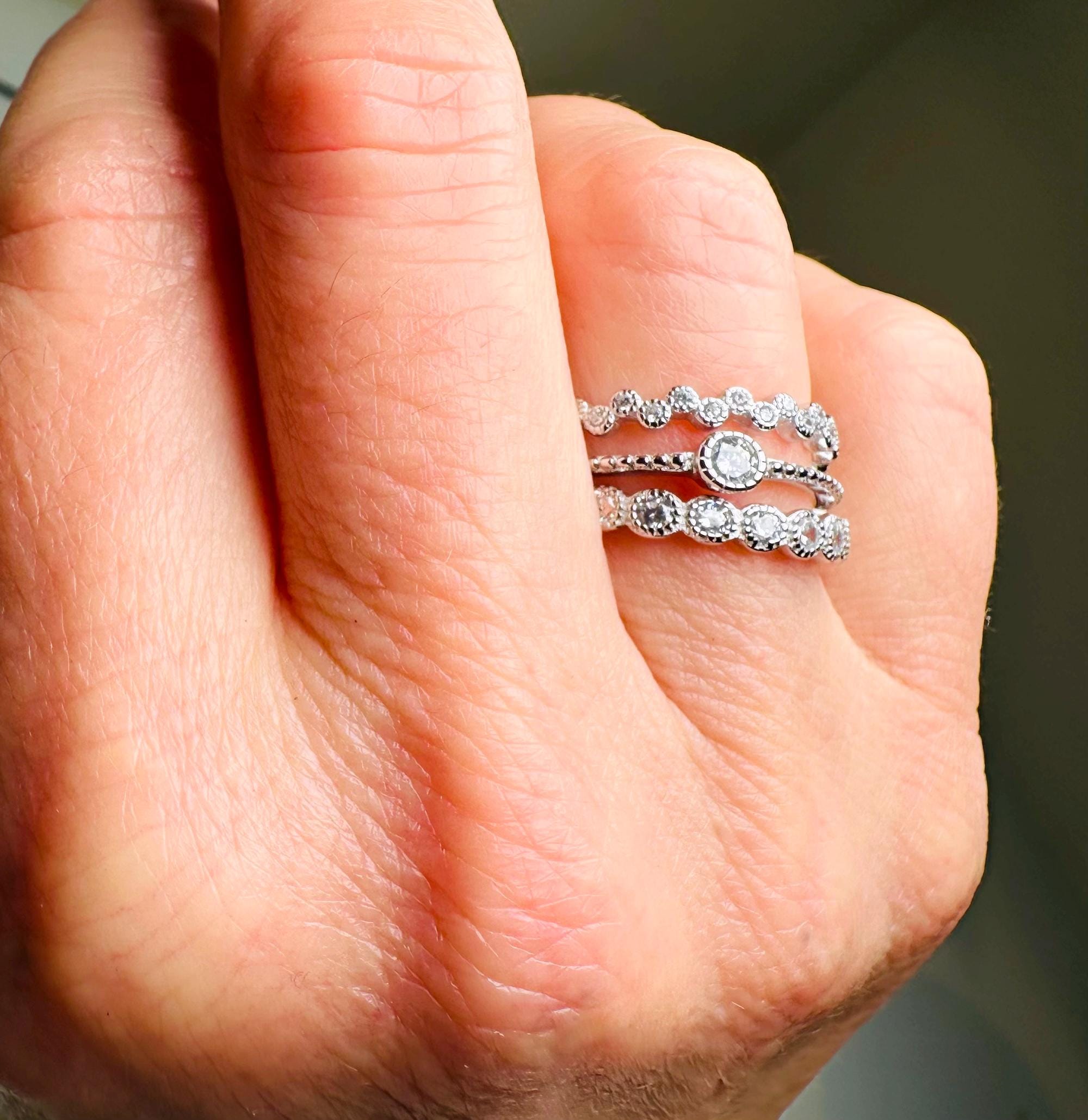 3 Piece Bezel Set Cubic Zirconia Stacking Layering Ring Bands.